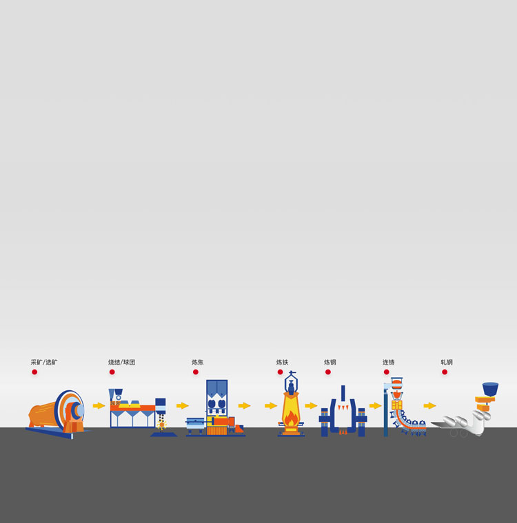 行業(yè)主要工藝流程:采礦/選礦——燒結(jié)/球團——煉焦——煉鐵——煉鋼——連鑄——軋鋼,臥龍能為冶金全程提供設(shè)備支持。